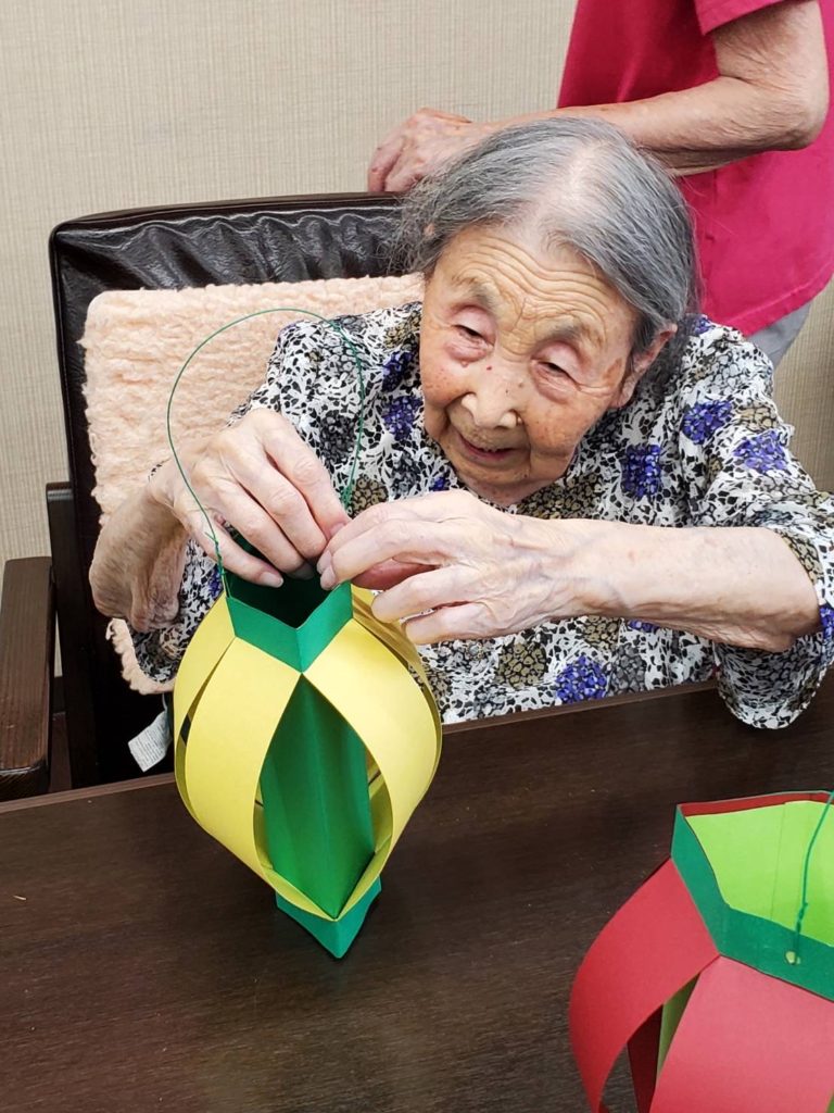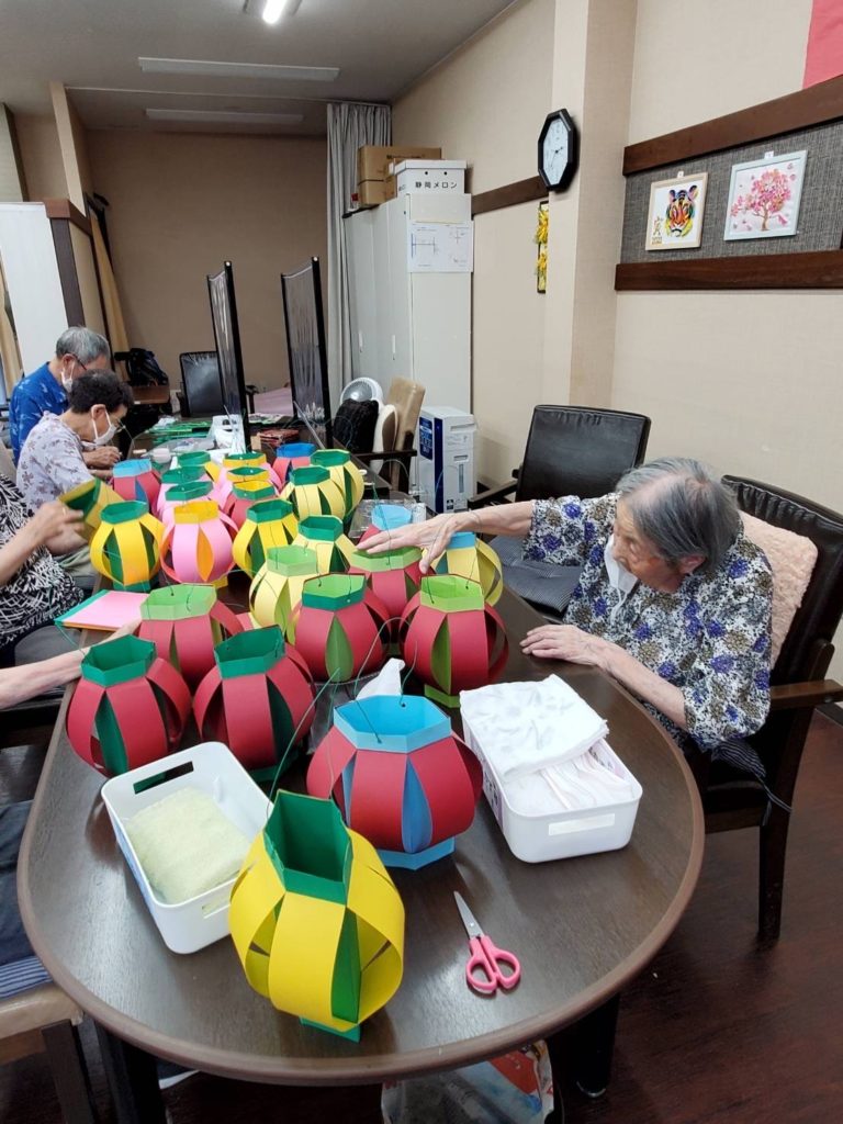 祭り前日には、ご利用者様と事前に用意していた手作りの提灯を組み立て、夏祭りの看板も完成させ飾り付けをしました✨