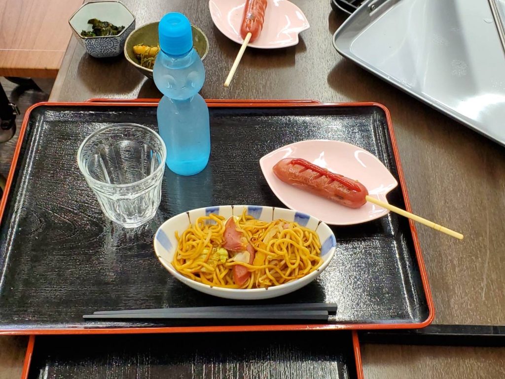 夏祭りの出店をイメージして、昼食は焼きそばやフランクフルトなど、屋台風のメニューにしました🍴