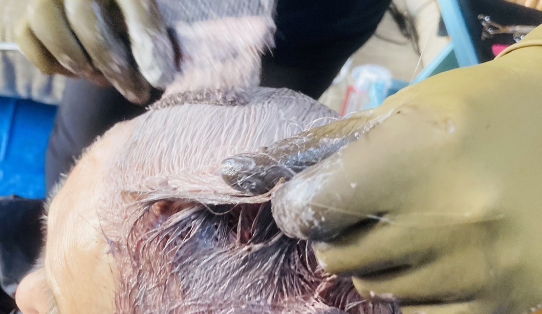 カラー液を髪に塗っていきます。