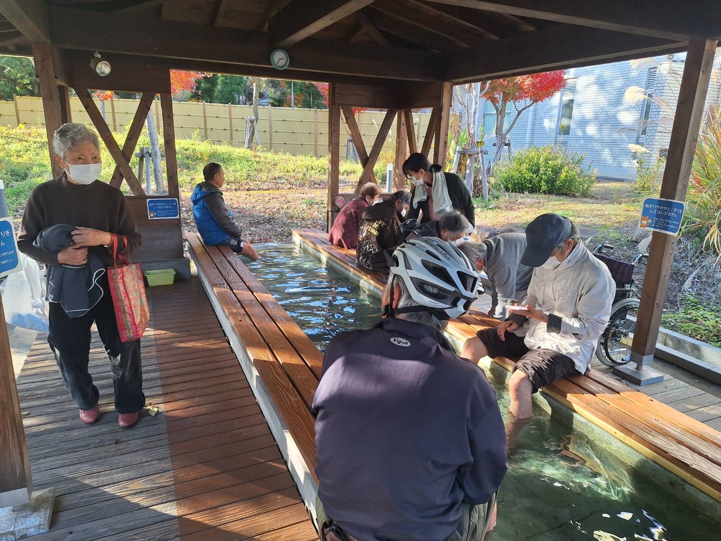足湯は、バリアフリーになっており車イスの方も利用できました。
