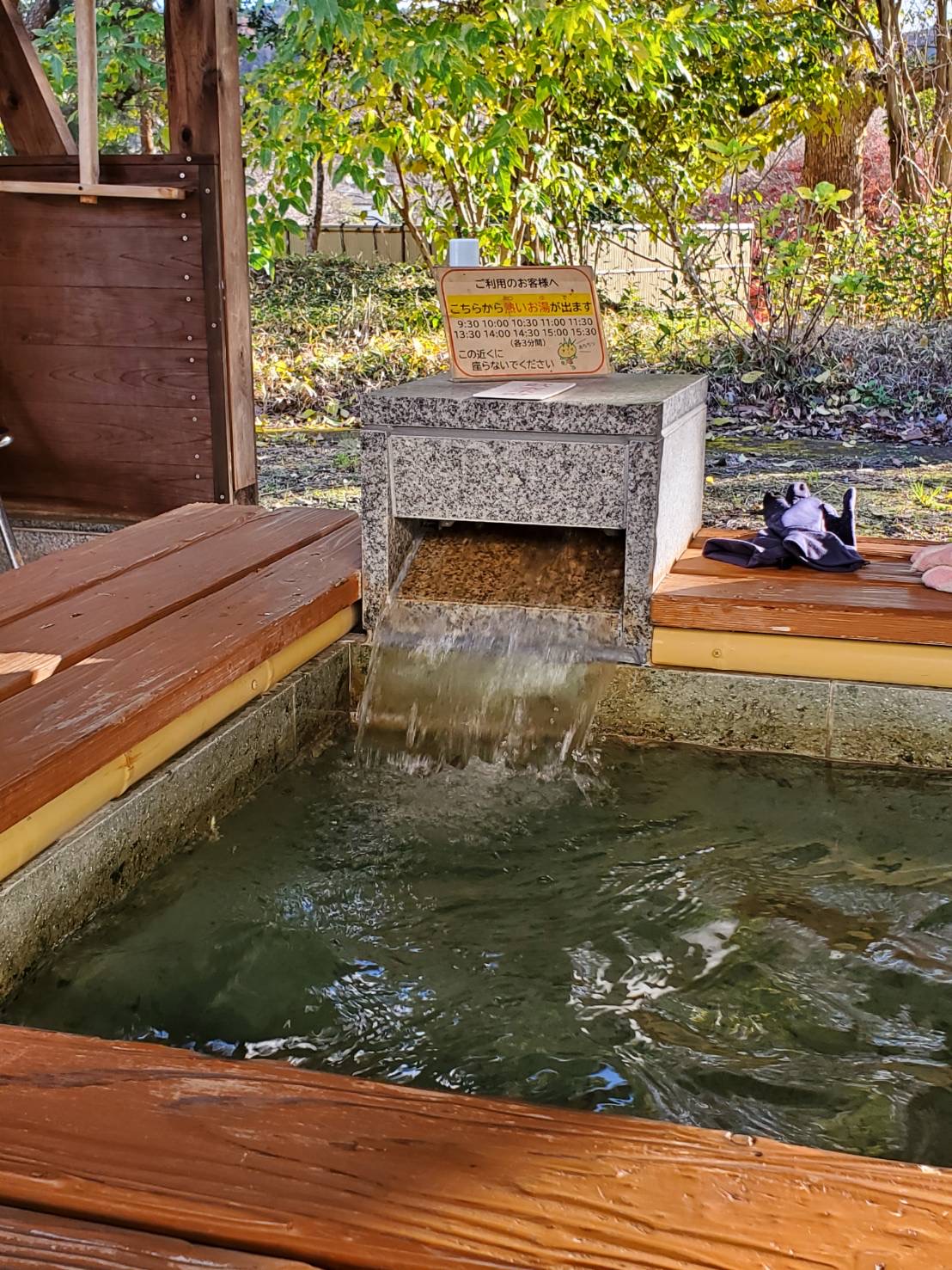 また、私たち以外にも地域の方も利用されていて気さくに話しかけてくださり、お湯は30分に1度出ることや、座る場所によって湯温が違うことを教えてくれました。
