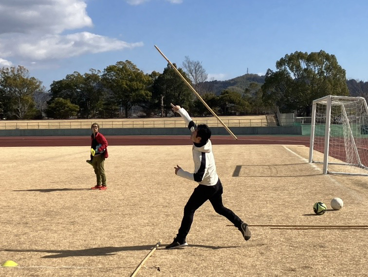 竹の棒を投げ、飛距離を争いました!みんな、初めてやる競技でしたが、オリンピックでの北口選手を思い出し、それぞれ楽しみました😊