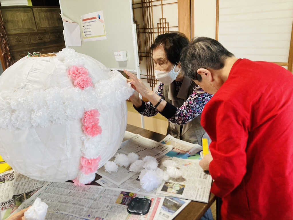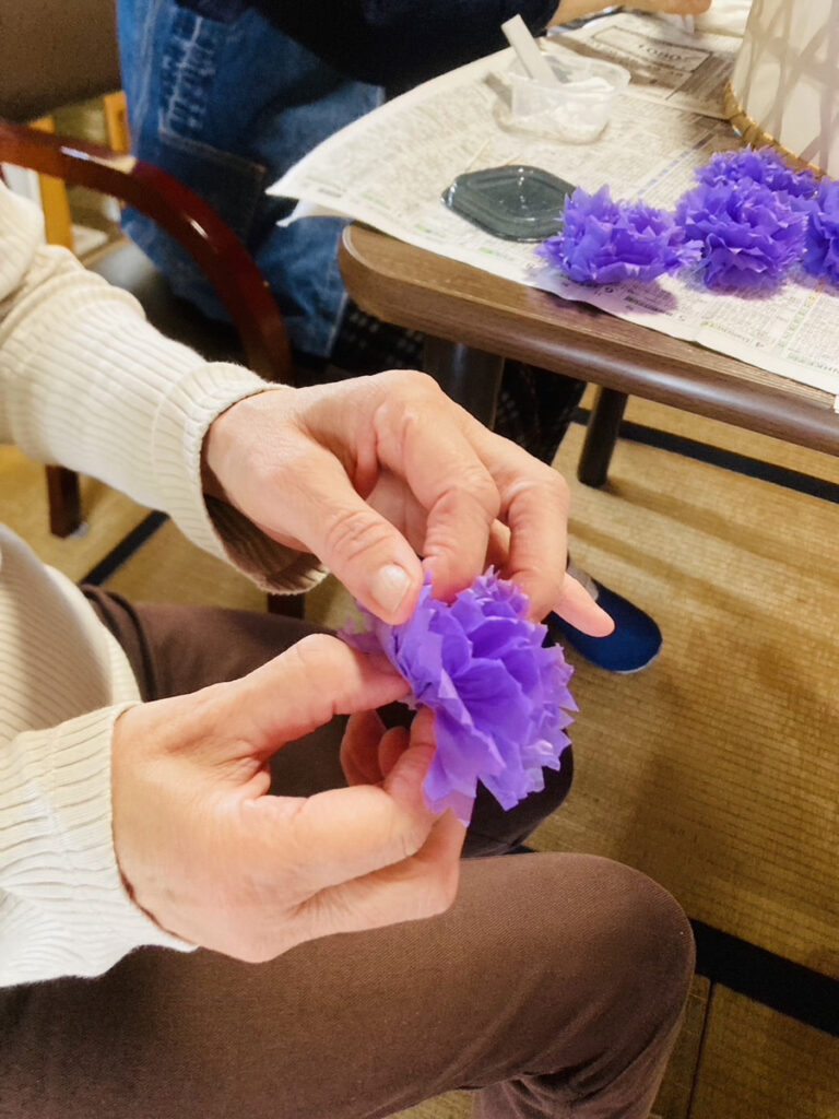 それからお花紙を張って飾り付け、きれいに進んでいます✨