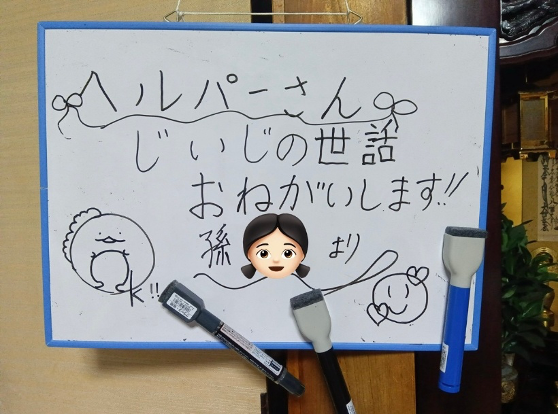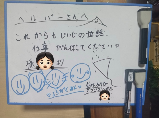 ある日の訪問介護先でのことです。いつものようにご利用者様のお宅を訪れると、居室に置かれたホワイトボードに、かわいらしい文字でこんなメッセージが書かれていました。
